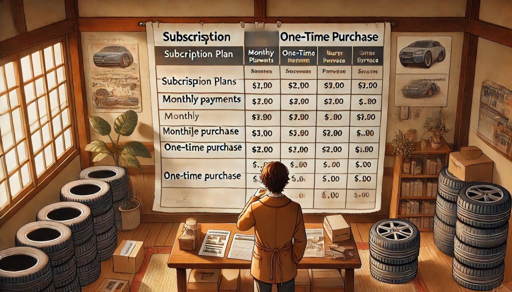 - サブスクリプションサービス: 月々定額料金で、タイヤを利用(交換・メンテナンス込み)。
